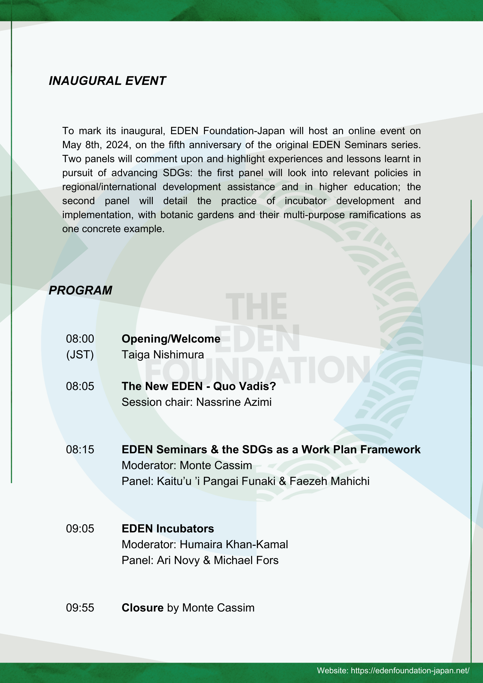 Jan. 31, 2020: EDEN’s third seminar brought together the Afghan ambassador to Japan, the architect Hiroshi Naito, and Nassrine Azimi, senior advisor from UNITAR to discuss how building a network of botanical gardens in Afghanistan could help build a brighter future for its citizens and other developing nations that adopt this unique model.