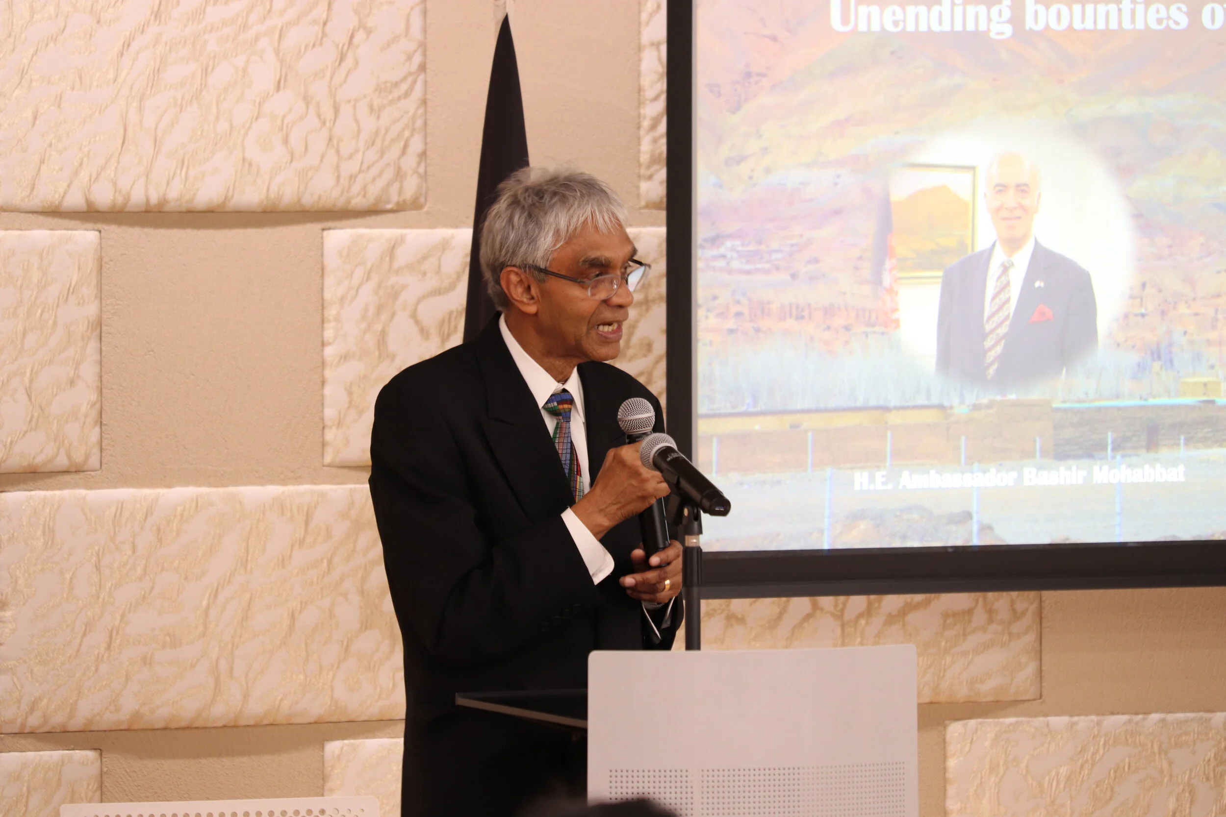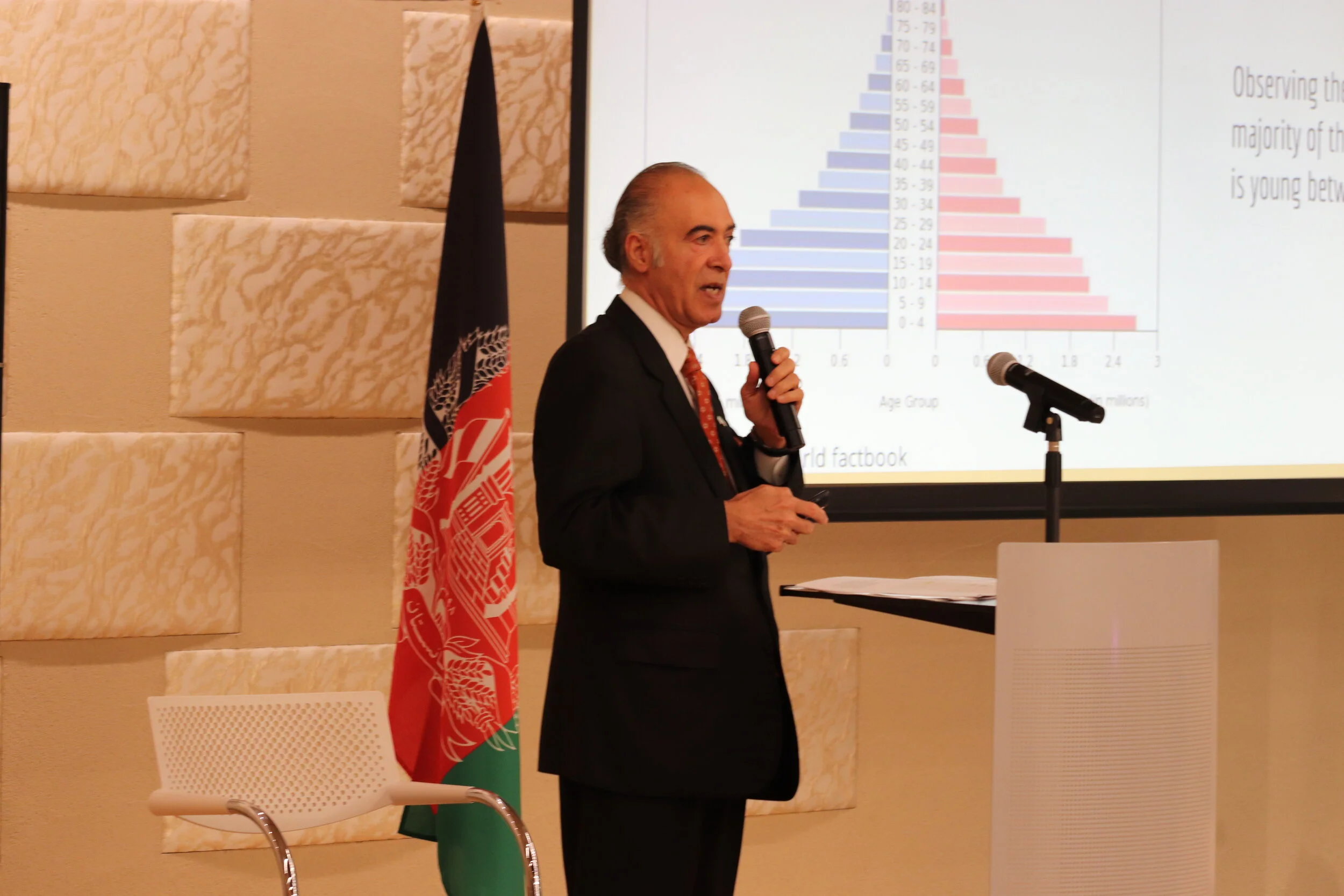 H.E. Ambassador Bashir Mohabbat presents figures on Afghanistan’s current situation, casting light on the realities of creating a botanical gardens initiative.